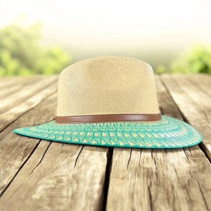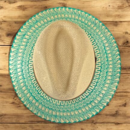 This Hand Painted Fedora Hat in green accents is a stunning unisex accessory perfect for travel, parties, or casual outings. Made of handwoven palm straw with intricate detailed patterns, this lightweight hat exudes a unique Mexican flair. The detailed design and handmade craftsmanship make it a standout piece for those who appreciate a blend of traditional and modern styles. Perfect for the summer, fall, and spring seasons, this Fedora hat in size XL is a stylish and eye-catching addition to any wardrobe.