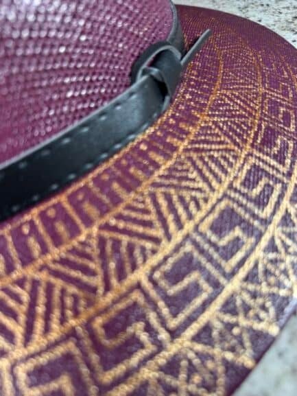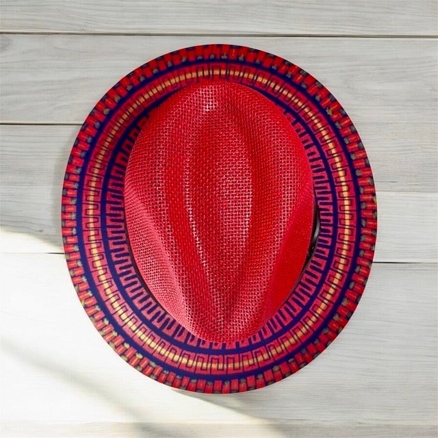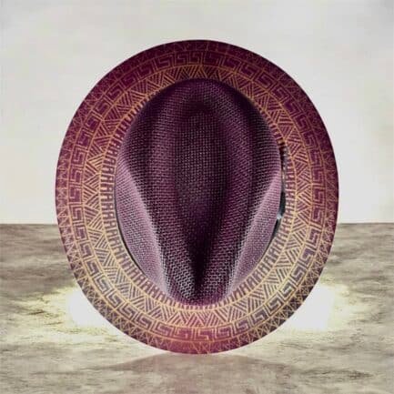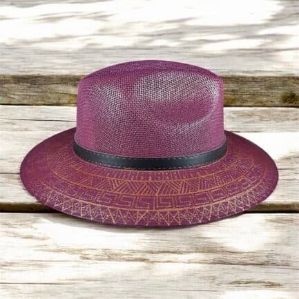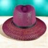 This Hand Painted Fedora Hat Purple-Violet with golden accents is a stunning unisex accessory perfect for travel, parties, or casual outings. Made of handwoven straw with intricate detailed patterns, this lightweight hat exudes a unique Mexican flair. The detailed design and handmade craftsmanship make it a standout piece for those who appreciate a blend of traditional and modern styles. Perfect for the summer, fall, and spring seasons, this Fedora hat in size L is a stylish and eye-catching addition to any wardrobe.